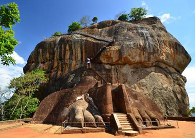 Sigiriya - is home to the 5th Century Fortress in the Sky which is perhaps the most fantastic single wonder of the Island. It is also known as Lion Rock because of the huge lion that used to stand at the entrance to the fortress. Within its triple-moated defense the huge rock rises almost to a sheer height of 500ft. On its summit are the foundations of what was once a great and sumptuous palace and gardens complete with swimming pool. On one of the stairways, the only known ancient work of Sinhala secular painting survived in the form of Frescoes of life sized damsels in all the freshness and delicacy of their original color.